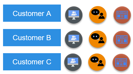 Historically, organizations have sent the same messages to all customers, using the same media channels. But, in the modern world, this may be perceived as SPAM that annoys customers and pushes them away. The diagram below (Figure 2) shows the traditional approach in action – every customer sees the same sequence of touchpoints.